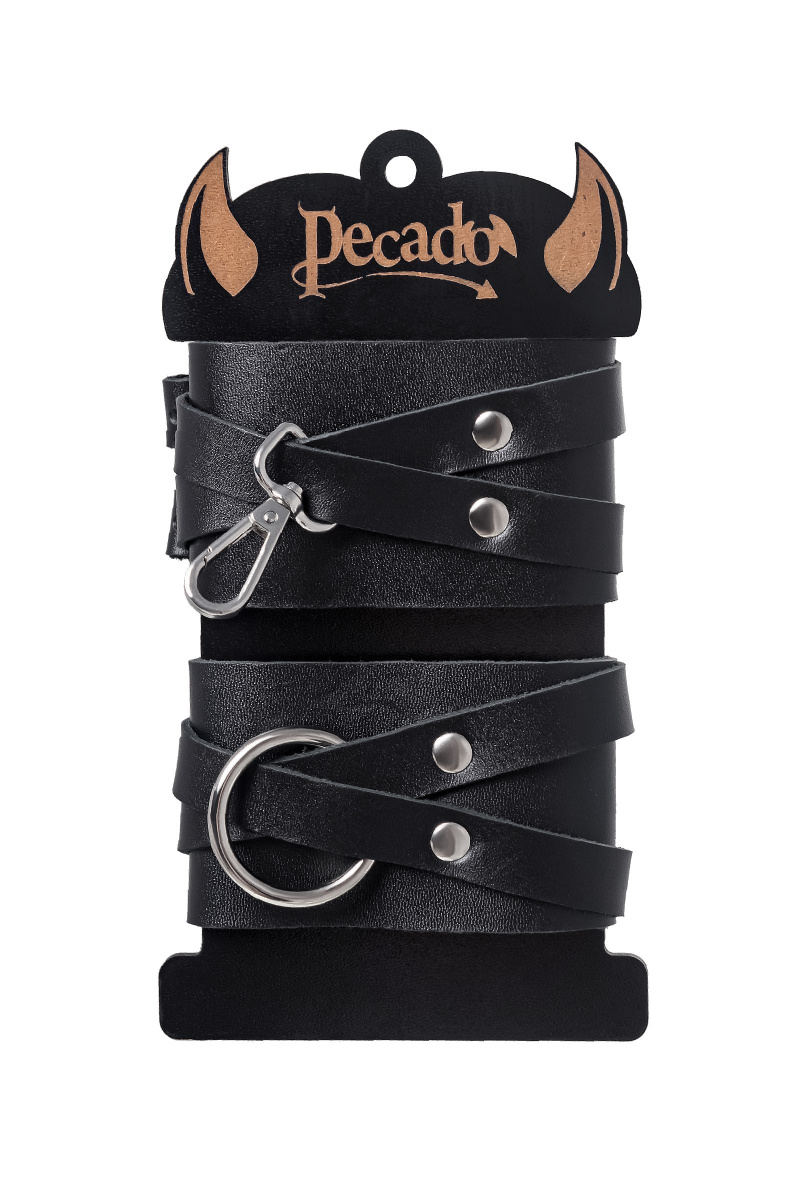 Купить Черные кожаные оковы с двумя перекрёстными ремешками Pecado по лучшей цене с доставкой - секс-шоп Ynunu.ru