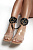 Оковы с декоративными резными узорами изготовлены из натуральной кожи. Декорированы золотой фурнитурой и клепками. В комплект также входит соединительный кожаный элемент с двумя карабинами, с помощью которого можно зафиксировать между собой ноги. Доставляется в фирменной упаковке в виде брендированной деревянной подложки.