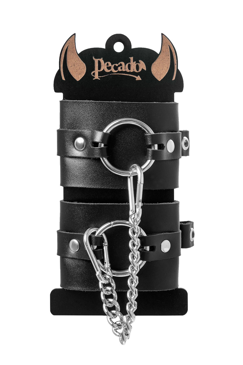 Купить Черные наручники из толстой натуральной кожи с люверсами Pecado по лучшей цене с доставкой - секс-шоп Ynunu.ru