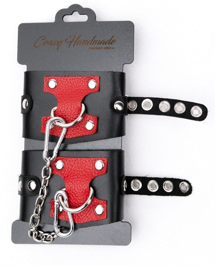Купить Черные наручники с красным декором и заклепками Crazy Handmade по лучшей цене с доставкой - секс-шоп Ynunu.ru