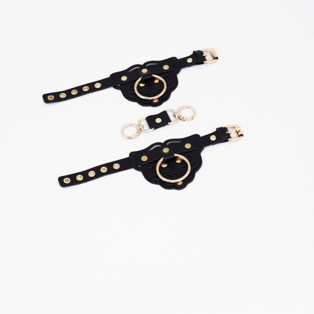 Купить Черные наручники с золотистой фурнитурой Crazy Handmade по лучшей цене с доставкой - секс-шоп Ynunu.ru