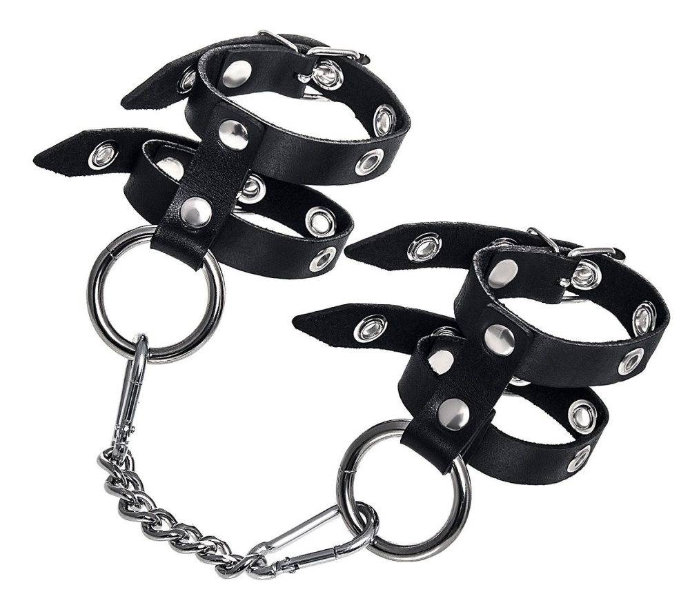 Однослойные кожаные наручники из двух ремешков могут стать стильным аксессуаром на «свободных» руках, но могут послужить вашим целям и фантазиям по своему прямому назначению.