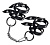 Наличие двух колец и карабинов, соединенных между собой металлической цепочкой, позволяет использовать изделие как раздельно – аксессуар-манжеты, так и как наручники для фиксации. К широким металлическим кольцам также можно присоединить и другие аксессуары при помощи карабинов.