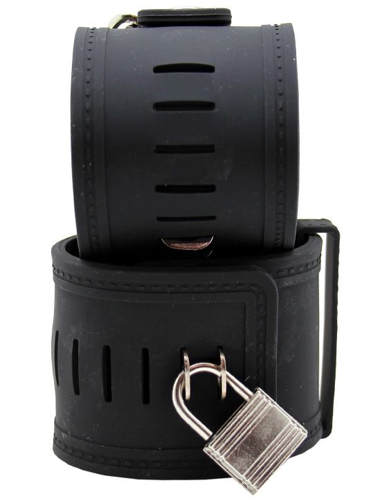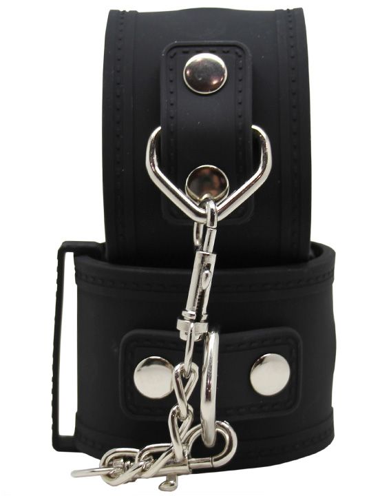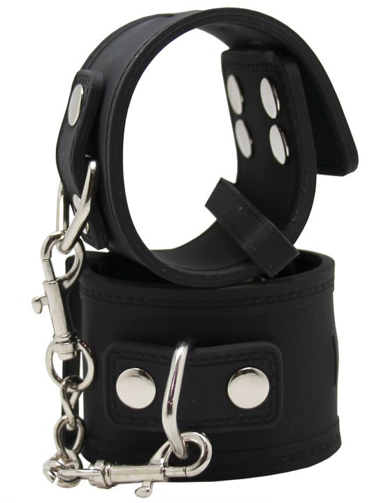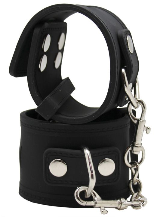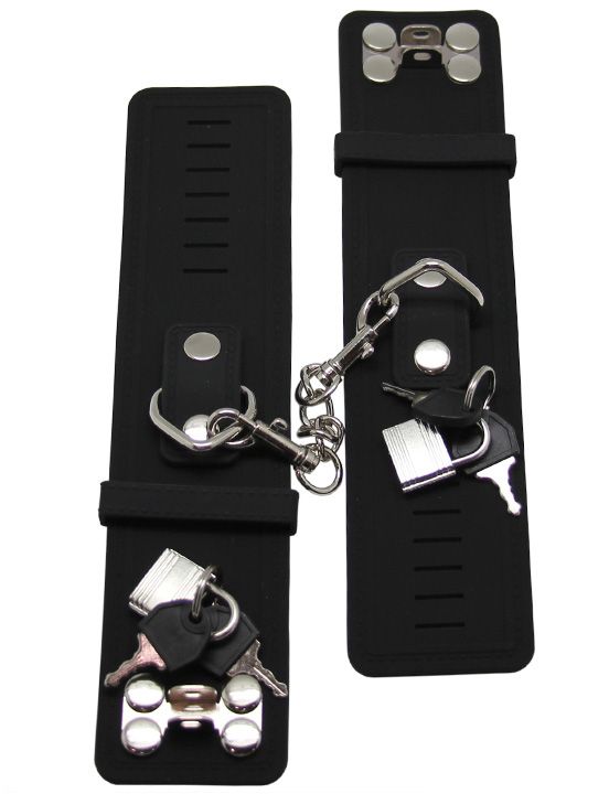 Черные силиконовые наручники с фиксацией на карабинах