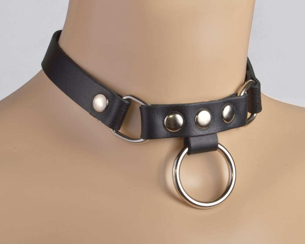 Черный чокер с клепками и кольцом