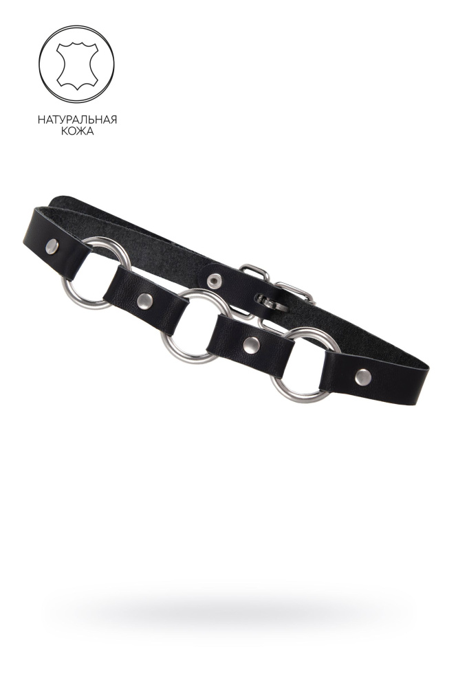 Купить Черный кожаный чокер-ошейник с тремя кольцами Pecado по лучшей цене с доставкой - секс-шоп Ynunu.ru