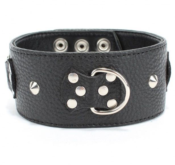 Купить Черный кожаный ошейник с короткими шипами БДСМ Арсенал по лучшей цене с доставкой - секс-шоп Ynunu.ru