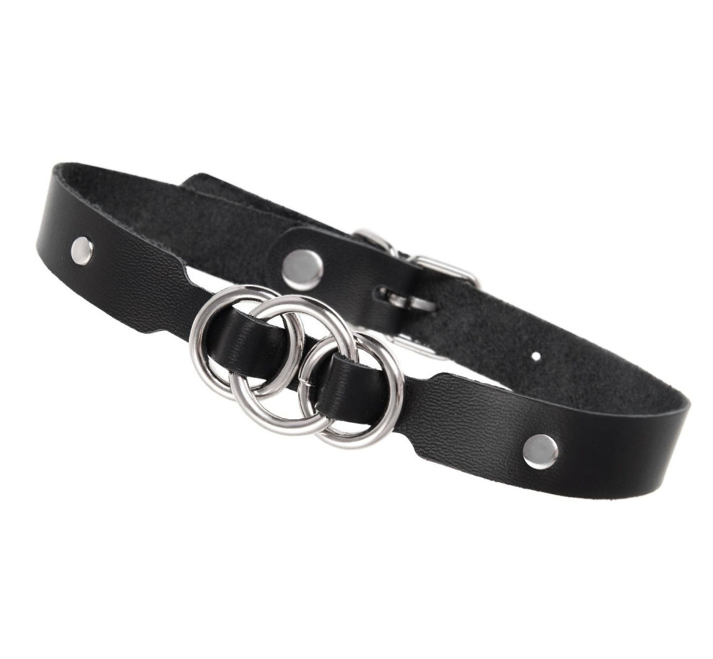 Черный кожаный ошейник со связанными кольцами