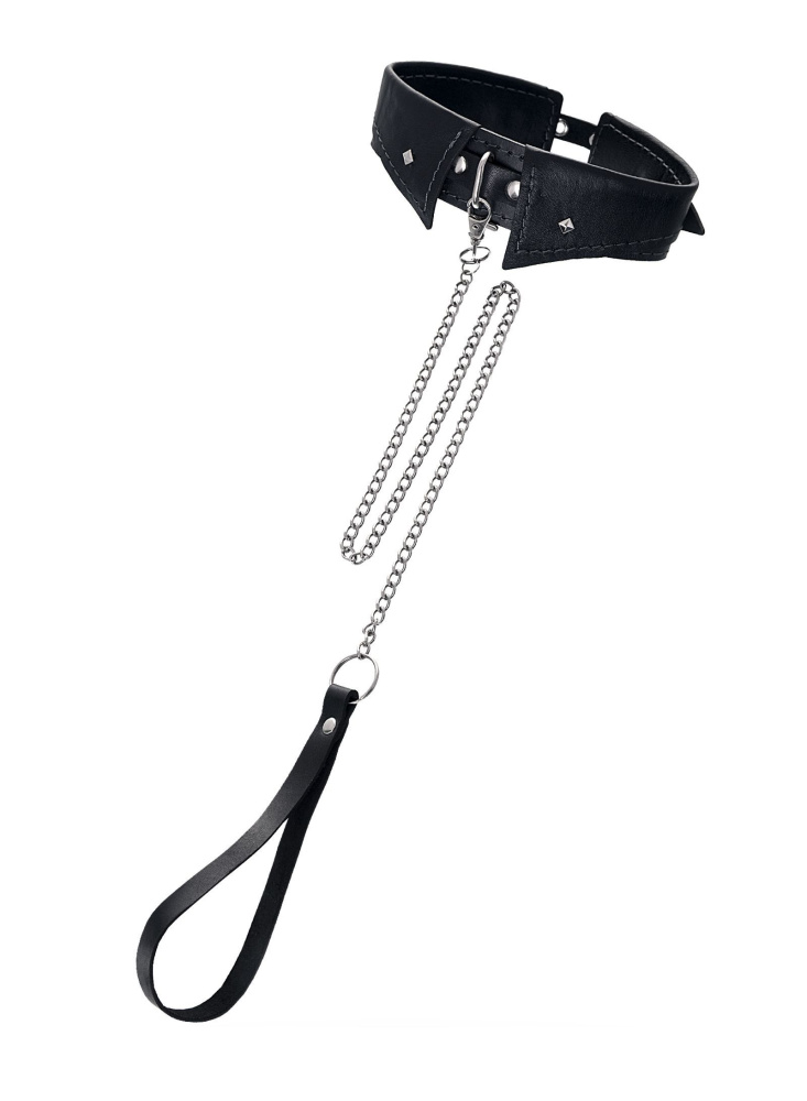 Купить Черный кожаный ошейник-воротник с поводком Pecado по лучшей цене с доставкой - секс-шоп Ynunu.ru
