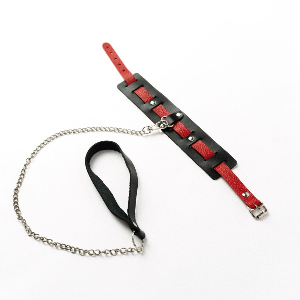 Купить Черный ошейник с красным ремешком и поводком Crazy Handmade по лучшей цене с доставкой - секс-шоп Ynunu.ru