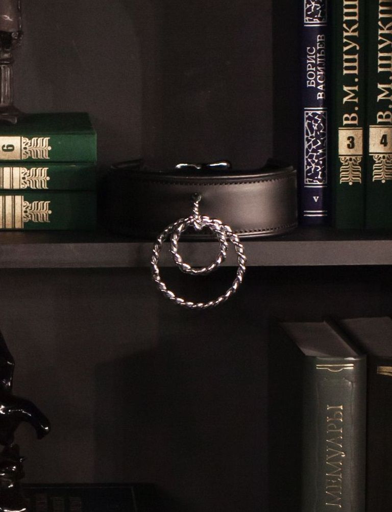 Купить Черный ошейник Scandal из натуральной кожи с витыми стальными кольцами Scandal по лучшей цене с доставкой - секс-шоп Ynunu.ru