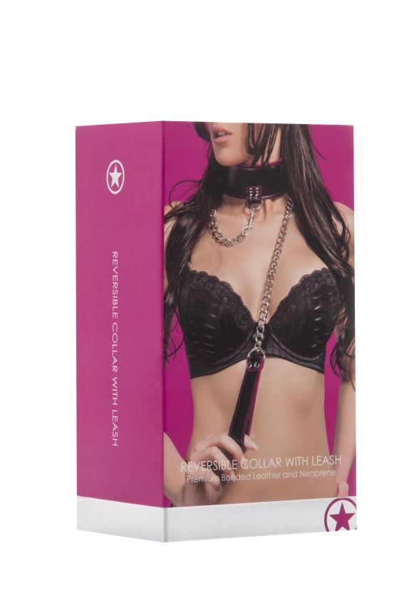 Купить Чёрно-розовый двусторонний ошейник с поводком Reversible Collar with Leash Shots Media BV по лучшей цене с доставкой - секс-шоп Ynunu.ru