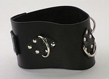 Застежка - ремешок с пряжкой; анатомической формы, с 3 D-кольцами - 2 вертикальными по бокам и 1 горизонтальным по центру; не подшитый. Совместная разработка с Фетиш Компани (GC). Ширина - 9 см.