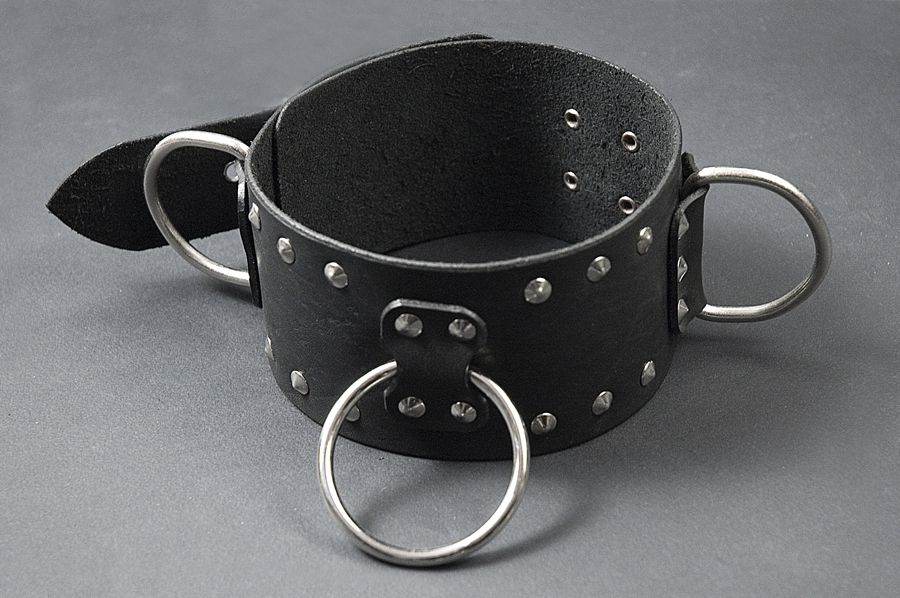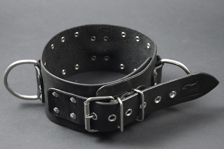 Ошейник в BDSM может иметь различные назначения. Он может использоваться в качестве антуража для создания образа. Может использоваться в практическом назначении как один из связующих элементов бандажа. А самое главное - он имеет глубокое психологическое значение, так как ошейник это основная эмблема подчинения и наказания. Ширина - 8 см.
