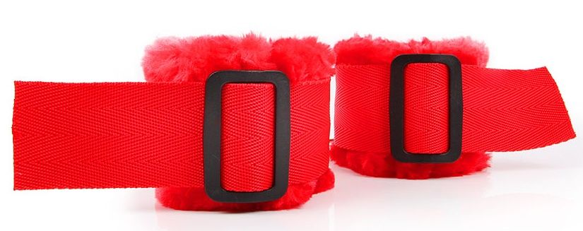Красные меховые наручники на регулируемых черных пряжках