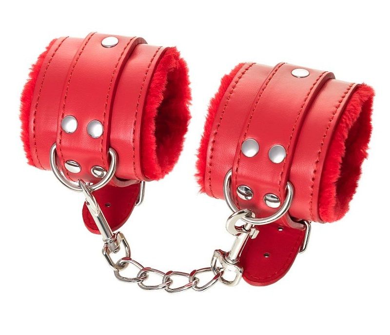 Наручники яркого красного цвета с металлической отделкой говорят вовсе не об агрессии. Эти произведения искусства говорят о страсти, которую можно проявить, но только с разрешения Доминанта. Подклад из искусственного меха делает ношение этих наручников более комфортным, но расслабиться в них не получится – цепочка на карабинах сильно ограничивает свободу действий. Длина наручников позволяет использовать их практически на любой размер рук. Отрегулировать размер и силу обхвата легко с помощью ремешка и металлической пряжки. Наручники – классический предмет для игры в подчинение, обязательный для начинающих и опытных поклонников БДСМ. Дополните комплект аксессуарами – ошейником, кляпом, оковами и продемонстрируйте что значит грубое обращение и полный контроль над свободой. Ширина - 5,5 см.