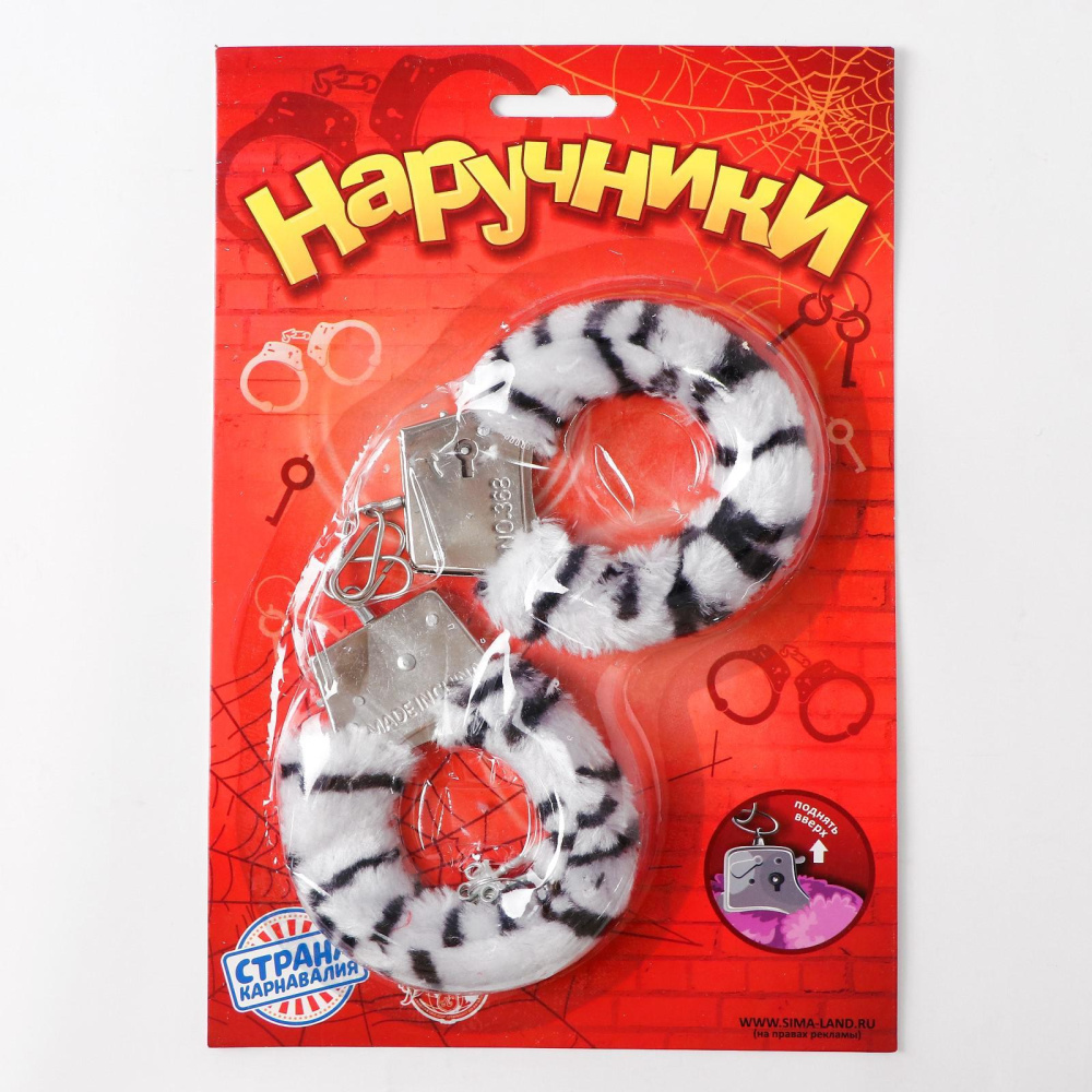 Купить Металлические наручники с чёрно-белой плюшевой отделкой Сима-Ленд по лучшей цене с доставкой - секс-шоп Ynunu.ru