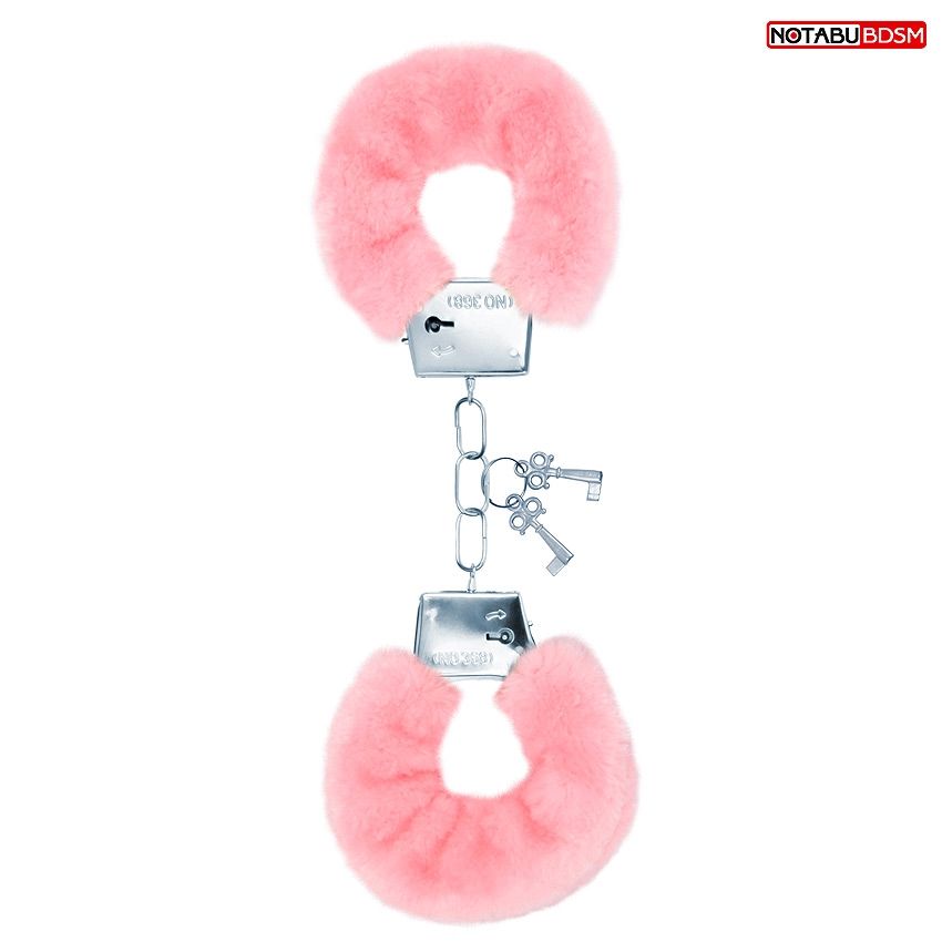 Купить Металлические наручники с мягкой нежно-розовой опушкой Notabu по лучшей цене с доставкой - секс-шоп Ynunu.ru