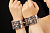 Напульсники с шипами изготовлены из искусственной кожи и меха. Ширина напульсников - 4,5 см.