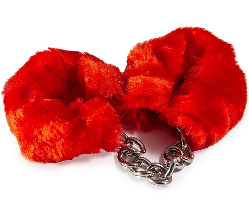 Купить Наручники с красным искусственным мехом Vulgar по лучшей цене с доставкой - секс-шоп Ynunu.ru