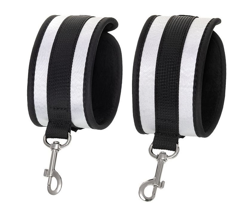 Наручники — классический предмет для игры в подчинение, обязательный для начинающих и опытных поклонников БДСМ. Блестящий во всех смыслах аксессуар для ограничения свободы: сатиновый материал поблескивает, когда на него падает свет. Необычное сочетание серебристого и черного, совсем нехарактерное для классического исполнения аксессуаров в стиле БДСМ, придает изюминку и новизну. Подчиненный с таким аксессуаром выглядит неотразимым. Застежка велкро позволяет зафиксировать руки любого размера. Между собой наручники скрепляются карабинами, практически не оставляя свободы действий. Никакого послабления, только полное подчинение своему Доминанту, где бы ни были зафиксированы руки: впереди или за спиной. Используйте дополнительно цепочку для расширенных возможностей фиксации положения рук. Начните игру в подчинение с этим аксессуаром, и вы поймете, как развивать свою чувственность с помощью ограничения свободы одного из партнеров. Ширина - 5,5 см.