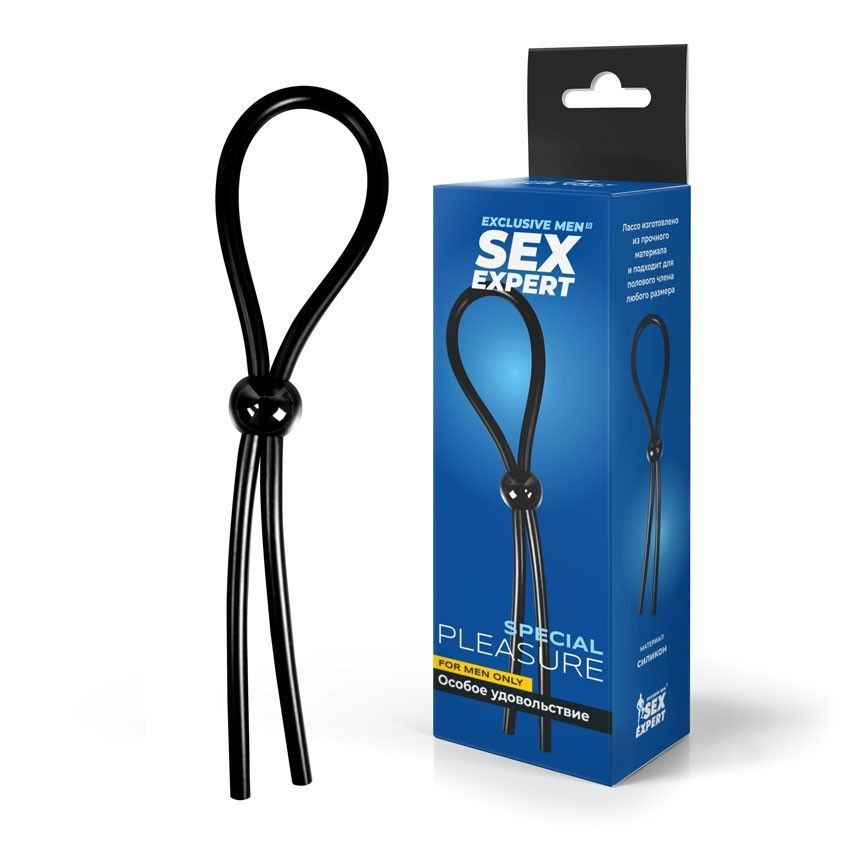 Купить Черное силиконовое лассо с шариком для утяжки Sex Expert по лучшей цене с доставкой - секс-шоп Ynunu.ru