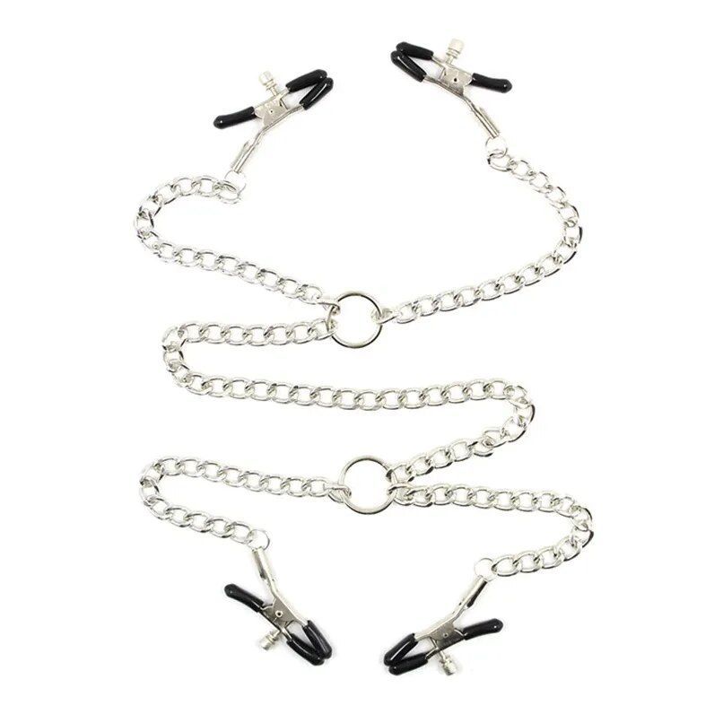 Купить Серебристые зажимы для сосков и половых губ на тонкой цепочке по лучшей цене с доставкой - секс-шоп Ynunu.ru