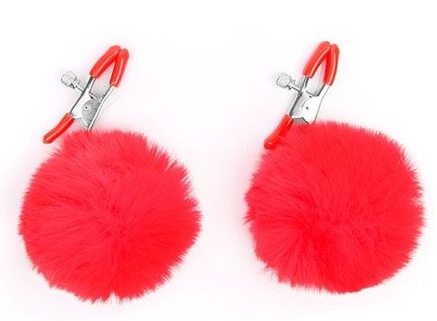 Купить Зажимы для сосков с красным пушком Notabu по лучшей цене с доставкой - секс-шоп Ynunu.ru