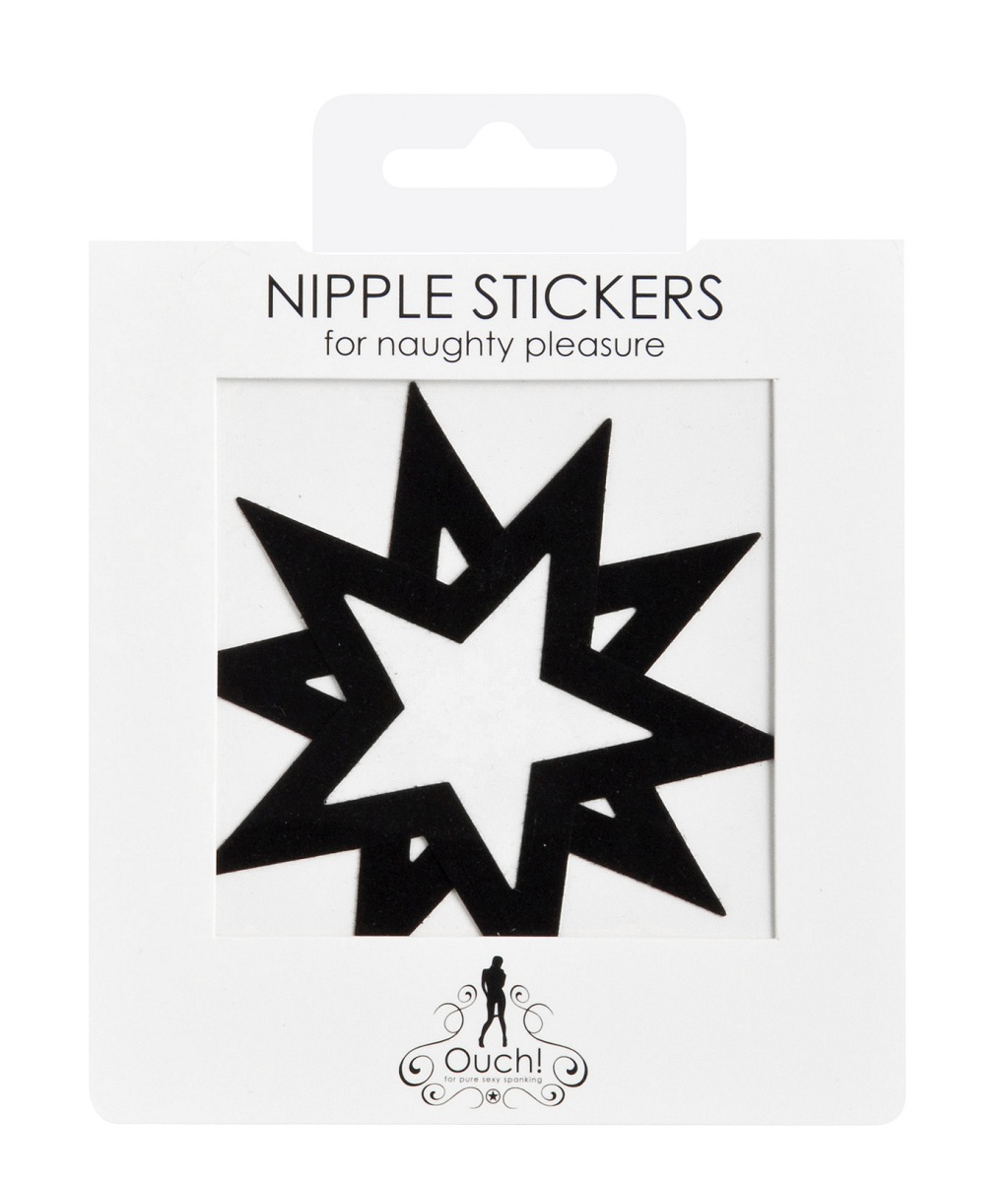 Чёрные наклейки на грудь в форме звёздочек. Размеры - 8 х 8 см.