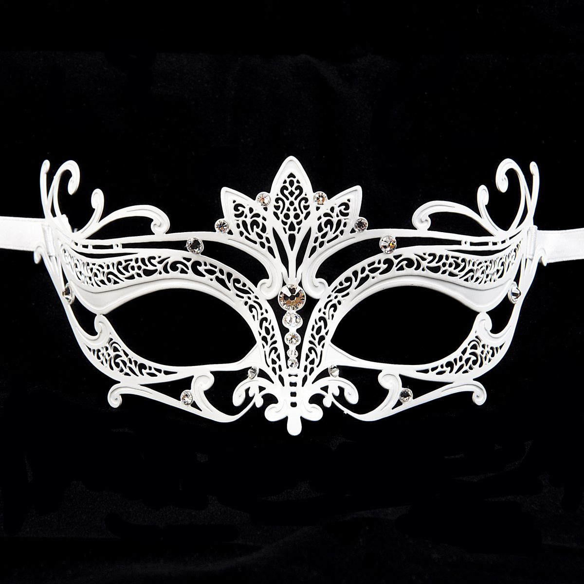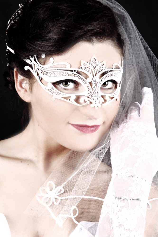 Маска скрывает и в то же время подчеркивает лицо, делая его загадочным и желанным. Сделаная из тонкого металла, в то же время легкая и воздушная, элегантно завязывается на голове с помощью шелковых лент.