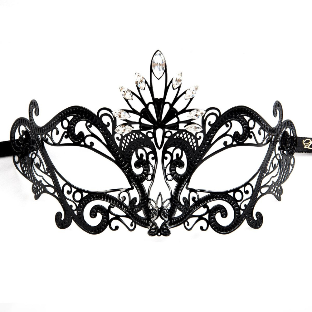 Маска скрывает и в то же время подчеркивает лицо, делая его загадочным и желанным. Сделаная из тонкого металла, в то же время легкая и воздушная, элегантно завязывается на голове с помощью шелковых лент.
