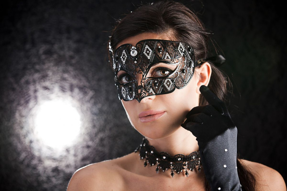 Маска скрывает и в то же время подчеркивает лицо, делая его загадочным и желанным. Сделаная из тонкого металла, в то же время легкая и воздушная, элегантно завязывается на голове с помощью шелковых лент.