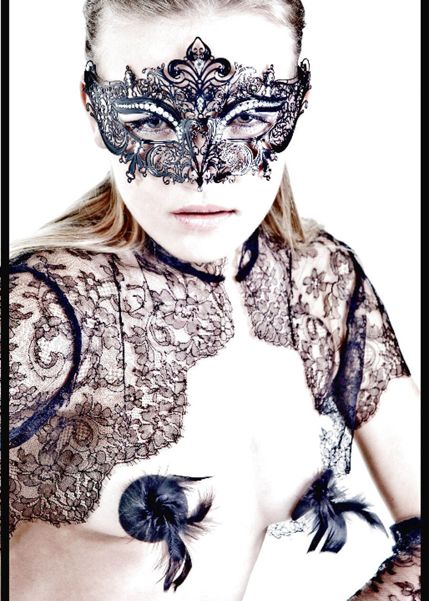 Венецианская маска Ofelia - элегантная маска со стразами - бусинками в надбровных дугах и над переносицей, создающих ощущение праздничности и изысканности. Неповторимый узор сделает Вас совершенно неподражаемой, подчеркнет блеск Ваших глаз, соблазнит любого, кто на Вас взглянет... Черные шелковые ленты так приятно завязывать...Ощутите себя в любой роли, скрывшись за маской Прекрасной Офелии...