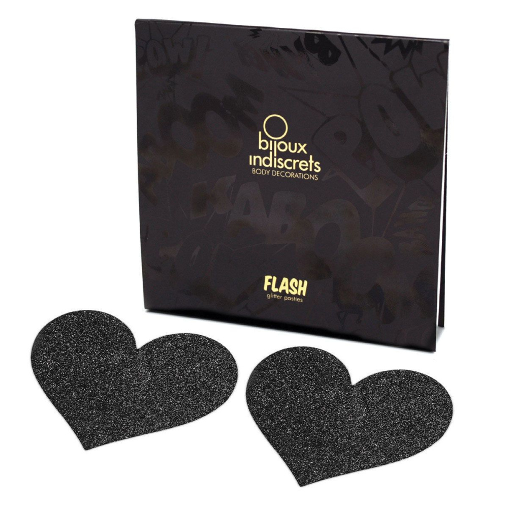 Купить Черные блестящие пэстисы-сердечки Flash Heart Bijoux Indiscrets по лучшей цене с доставкой - секс-шоп Ynunu.ru