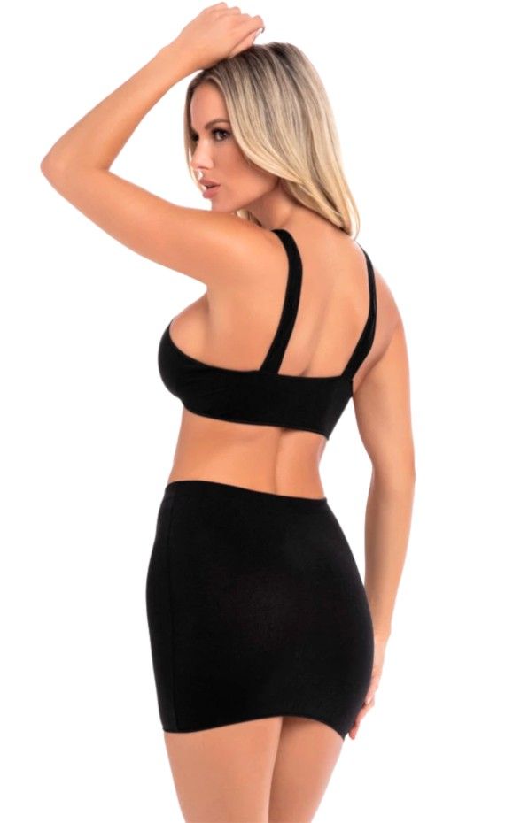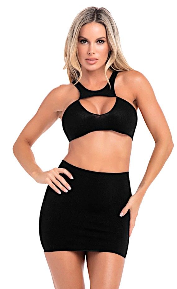 Эротический комплект из 2-х предметов: топ с открытым декольте и юбка. В комплекте: топ, юбка.