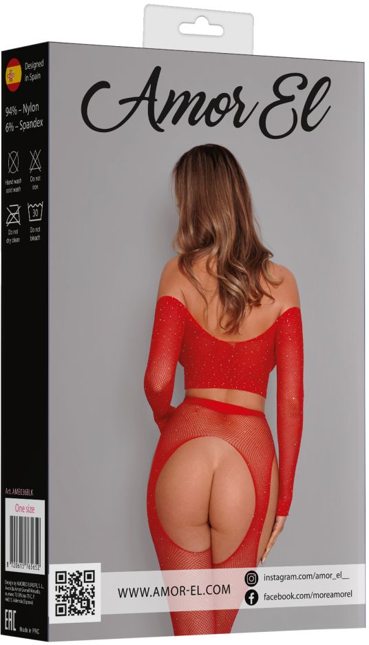 Купить Эффектный сетчатый комплект: топ с рукавами и чулки на поясе Amor El по лучшей цене с доставкой - секс-шоп Ynunu.ru