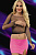 Комплект из полупрозрачного топа в сетку, с длинными рукавами и петлей на первый палец, и короткой юбки из гладкого материала, с боковым разрезом. В комплекте: топ, юбка.
