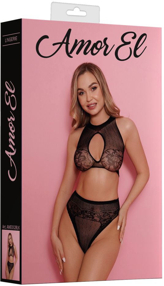 Купить Сетчатый комплект: лиф и трусики с высокой посадкой Amor El по лучшей цене с доставкой - секс-шоп Ynunu.ru