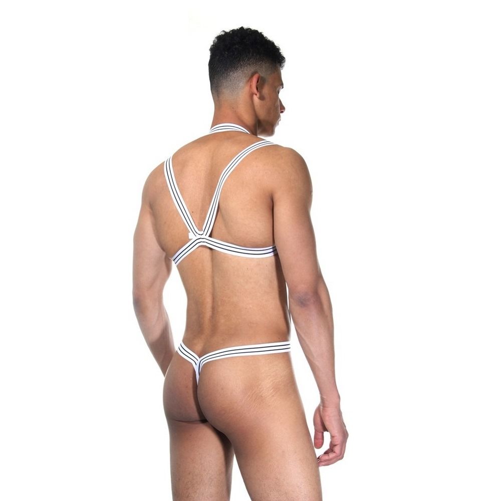 Белое мужское боди из широких резинок