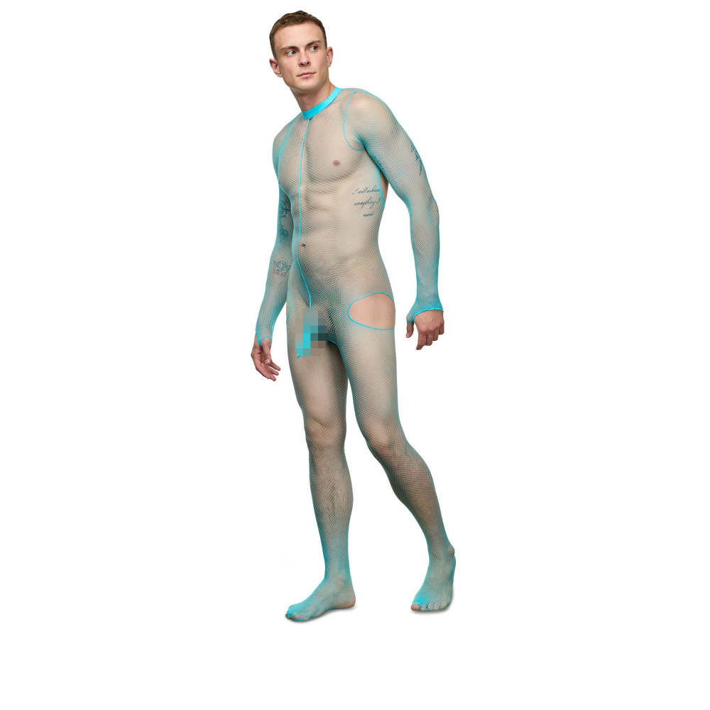 Купить Мужской бирюзовый сетчатый кэтсьюит с интимным доступом La Blinque по лучшей цене с доставкой - секс-шоп Ynunu.ru