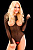 Черное боди из полупрозрачной эластичной мелкой сетки, с длинными рукавами. Пикантность боди заключается в полностью открытой зоне бикини, и в двух больших вырезах на груди.
