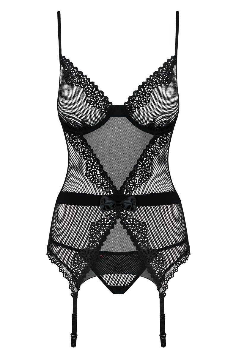 Купить Грация в мелкую сетку Lustella с декоративным бантом Obsessive по лучшей цене с доставкой - секс-шоп Ynunu.ru