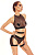 Женский комплект белья Reverie, состоящий из прозрачного топа с открытой спиной, интересного пояса и трусов-слипов, декорированных металлическим кольцом. В комплекте: топ, трусики-слипы, пояс.