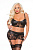 Комплект эротического белья из эластичного материала с эффектом мокрого блеска, декорированного роскошными кружевными вставками. Бюстгальтер отлично поддерживает и слегла приподнимает грудь, а прозрачная мини-юбочка с завышенной талией скрывает живот, обрамляет и стройнит бедра. В комплекте подтяжки для чулок. В комплекте: топ, юбка с пажами.