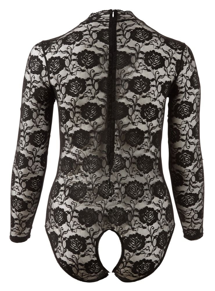 Женское боди с длинным рукавом. Боди с интимным доступом. Рисунок в виде цветочной вышивки. Воротничок - стойка.