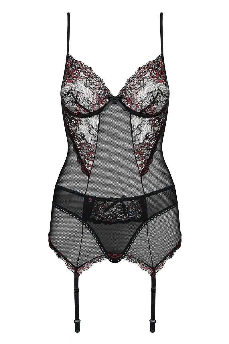 Купить Полупрозрачный корсаж с бордовым кружевом Musca Obsessive по лучшей цене с доставкой - секс-шоп Ynunu.ru