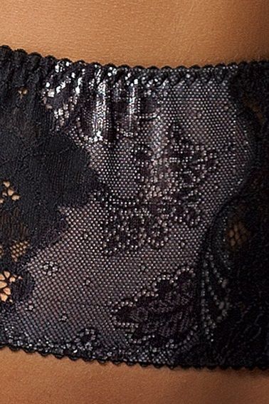 Широкий пояс из полупрозрачного тюля, также с ажуром, визуально уменьшит талию и привлечёт внимание к трусикам с доступом. В комплекте: бюстгальтер, пояс, трусики-стринги.