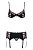 Эротический комплект, который, вероятно, не оставит мужчину равнодушным. Трусики, бюстгальтер и пояс для чулок в едином ансамбле, украшенном нежным кружевом.  В комплекте: лиф, трусики-стринги, пояс.