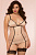 Мягкое бюстье без косточек с кружевом и контрастной отделкой. Сзади - полностью открытая спина с атласной шнуровкой. Пажи для чулок отстегиваются и регулируются по высоте, также как и бретели лифа. В комплекте: бюстье, трусики-стринги.
