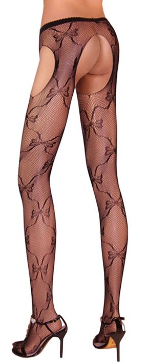Женские колготки с узором в виде бантиков, с имитацией чулок с интимным доступом.